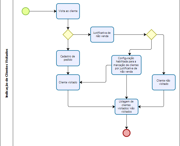 O cliente possui equipes de vendas que tem por modo de operação visitar um determinado cliente mais de uma vez dentro de um ciclo de vendas (mês comercial). Por conta desta estrutura, torna-se difícil o controle de visualização, a partir da relação dos clientes daquele vendedor, quais deles já foram visitados neste ciclo. Isso porque, ao realizar visitas a um cliente pela segunda vez, o vendedor não consegue identificar, a partir do sistema, quais clientes já foram visitados no ciclo presente. Por essa razão, há uma necessidade por parte do cliente em que se desenvolva um recurso visual que permita ao vendedor verificar que seu cliente já foi visitado dentro do ciclo de vendas, em que o início se dá no primeiro dia do mês, e o final se dá no último dia do mês vigente.