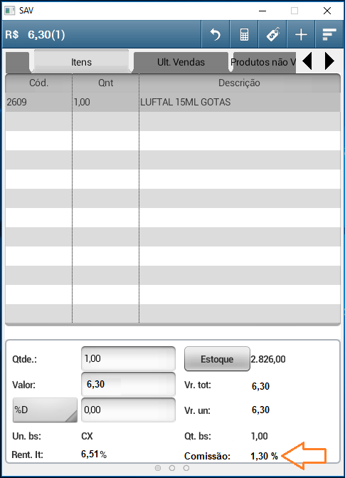 Teremos uma Comissão do Vendedor de 1,30 % do valor do item vendido.