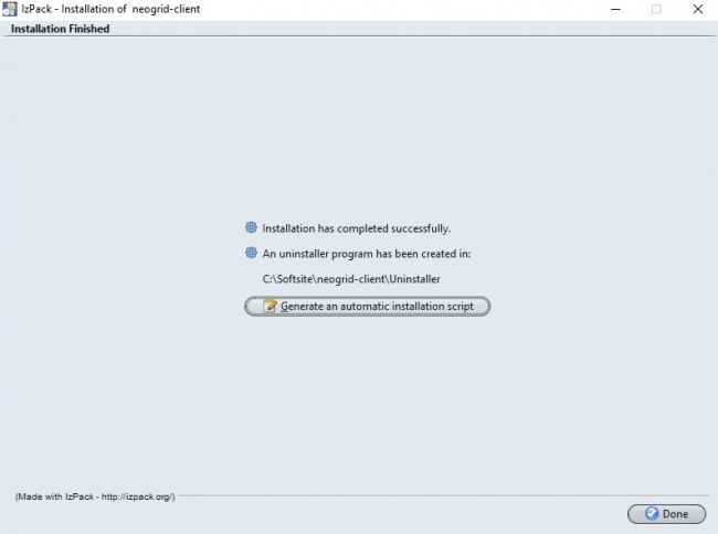 Inicialmente, será enviado ao cliente um executável, no formato Executable Jar File, chamado "neogrid-client-installer".